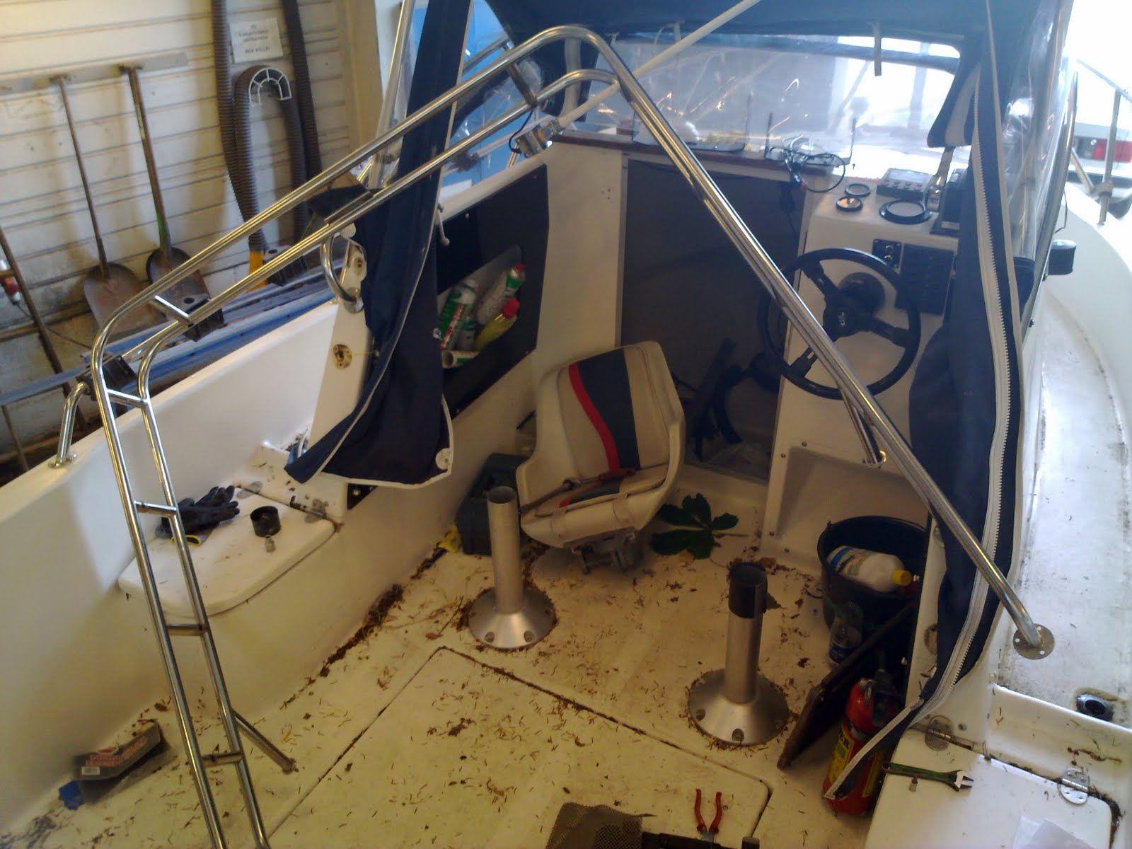 Her er vi i gang med at afmontere stang holdere og targabøjle , som skal gøres bredere og have monteret radarbeslag og vippebeslag. Der kommer også ekstra stang holdere på den.